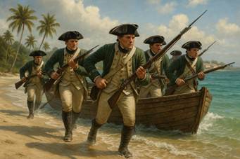 The Marines’ first major naval operation came in early 1776 when five companies joined Commodore Esek Hopkins’ Continental Navy squadron, on its first cruise in the Caribbean. This deployment demonstrated their value as both shipboard security and assault troops, setting the pattern for their service throughout the war.